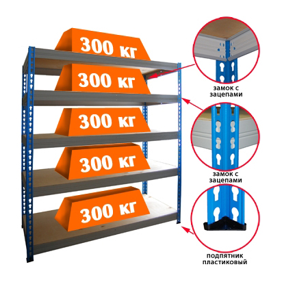 - В основном стеллажи продаются поэлементно. Данная базовая модель (с настилом) МКФ 15505-2,5 (5 ярусов) комплектуется четырьмя стойками c подпятником, двадцатью балками, пятью фанерами.